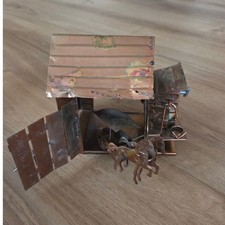 Vintage Brutialist Copper Metal Farm Scene with Horses and Cart Music Box