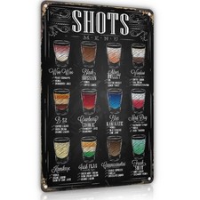 Vintage Style Shots Menu Metal Bar Sign Cocktail Recipe Wall Decor