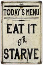 Today's Menu Eat or Starve Sign Vintage Look Kitchen Decor Pantry 108120020246