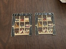 Set of two vintage toy store window display stain glass suncatcher