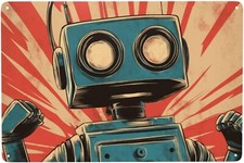 Vintage toy robot Tin Metal Sign chic Art Wall Decor For Living Room 8x12