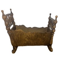 Vintage Carved Faux Wood Baby Cradle Toy