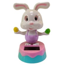 Solar Powered Dancing Rabbit Bobblehead Toy Bunny Easter Toy Cute Car Decor Vtg