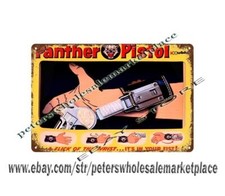 1960s Hubley Toy Panther Pistol metal tin sign bar club cottage farm plaques
