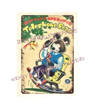 Childhood toy JAPAN Battery Op TELEPHONE BEAR play room metal tin sign art wall