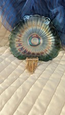 Vintage Fenton Green Carnival Glass - Candy Triangular Bowl