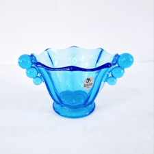 Vintage Fenton Aqua Blue Thumbprint Ruffled Art Glass Candy Dish