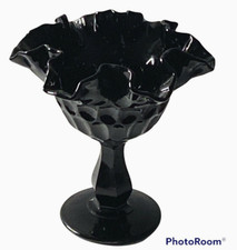 Gorgeous 6 " Fenton Glossy Black Vintage Art Glass Candy Dish Ruffled Edge