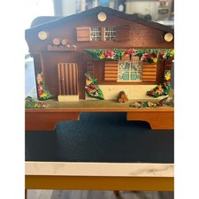 Vintage Musical Clock House Wooden Music Box Plays Tune