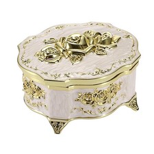 ELLDOO Vintage Music Box, Beige Metal Musical Jewelry Box Keepsake Box, Small...