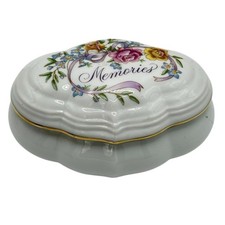 Vintage AVON 1983 Floral White Porcelain Keepsake Music Trinket Box Memories