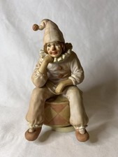 Vintage Enesco Sad Clown Music Box Porcelain Figurine on Drum 7"x 5"x 4" Works