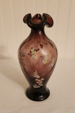 Vintage Fenton Mulberry 100th Anniversary Vase Hand Painted Signed Plum Purple