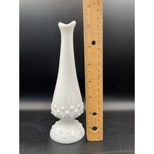 Vtg Fenton White Glass Hobnail Bud Vase Trumpet Swung Decor 7.75" MCM Art Deco