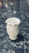 Vintage Milk Glass Cupped Vase Double Crimped Fenton Art Glass Hobnail Shape *