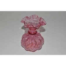 Pink Fenton Ruffled Glass Vase, Fenton Country Cranberry Optic Glass Melon Vase