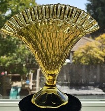 Vintage Fenton Peacock Vase Clear Gold Amber Glass Fan Vase