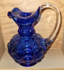Vintage Fenton Cobalt Blue Coin Dot Pitcher Vase Small EUC Glass Collectors 5 in