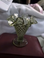 Vintage Fenton Ruffle Avocado Hobnail Vase