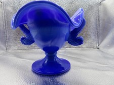 Fenton Double Dolphins Blue Carnival Art Glass Ruffled Compote Vase