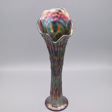 Vintage Fenton Carnival Glass 13" Swung Vase in Peacock Iridescent Cobalt Blue