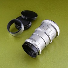 ELMAR 4/135mm LEICA-M MOUNT CHROME CAMERA LENS CAP GOOD OPTICS PRIME IUFOO HOOD