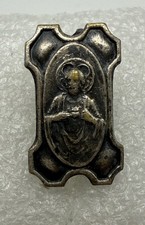 Vintage / Antique Religious Pin Brooch Metal Silver Tone Sacred Heart Jesus