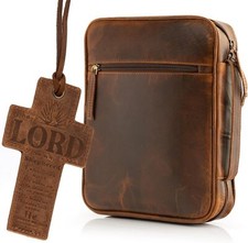 Antique Brown Leather Bible Cover Organizer with Cross Bookmark for Men & Women