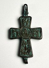Antique Style Wall Cross Gift For Mom Cast Iron Olive Moss Green Colors - Iberia