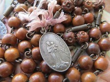 1800's Antique Pilgrimage Brown Wood Beads Rosary-N. D. de la Garde/Pink Ribbon