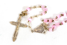 Antique Religious Rosary Pink Glass Cylinder Beads Miraculous Medal Mary 13"