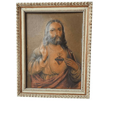 Antique raised 3D print of Sacred Heart of Jesus. 1939.