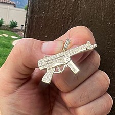 1.20 ct Moissanite Men's Iced AK-47 Rifle Pendant 14k White Gold Plated Silver