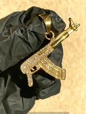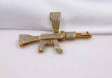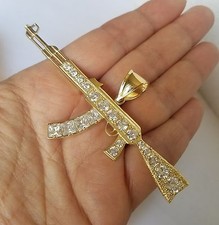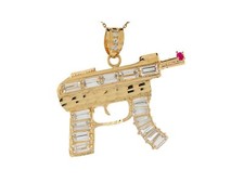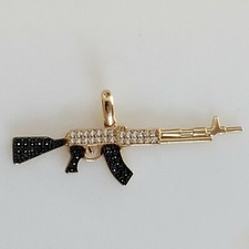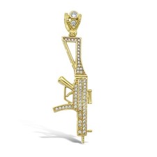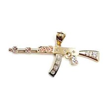 10k Gold Gun AK47 Pendant CZ Charm 2.2 inch