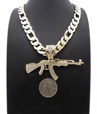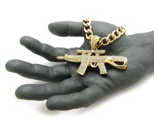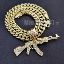 Hip Hop Iced AK-47 Gun Pendant 11mm 24" Cuban Link Chain*