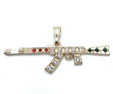 AK-47 Machine Gun Rifle Pendant Gold Plated Green Red Clear Crystals 2.75”