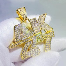 2 CT Natural Moissanite Initial "AK47" With Gun Pendant 14K Yellow Gold Plated