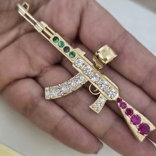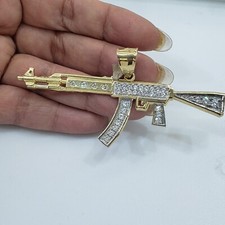 10k Yellow gold Diamond AK 47 Rifle Gun Men's Charm Pendant 0.80ct , ak47 neckl