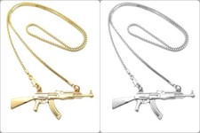 AK47 Rifle Pendant | Men Necklace | Machine Gun Rifle AK-47 Gold Plated Necklace