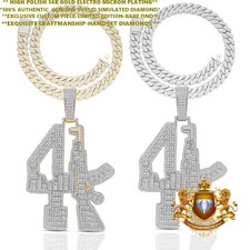 Mens Flooded Ice Baguette Choppa Ak 47 Hip Hop 24k Gold Silver Plated Pendant
