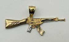 10K Yellow Gold AK-47 Machine Gun Military Rifle Pendant Charm 1.6 g