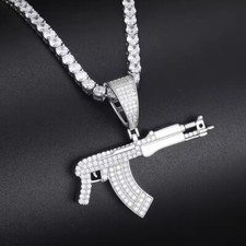 AK47 Submachine Gun Shape Hip Hop Pendant Necklace Crystal Gold Silver Jewelry