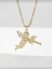 Cupid Angel Archer. With AK47 Gun Necklace And Chain 14 K Gold Layered
