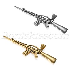 Mens Military Vintage Stainless Steel Rifle Gun AK47 Pendant Necklace With Chain