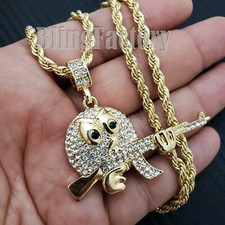 AK47 Gun iced Cz Pendant Silver / gold Plated rope Chain Men's Necklace Hip Hop