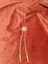 Vtg 1907 Indian Head Penny Bolo Tie, Silvertone Arrowhead, Black Cord