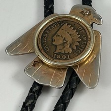 Vintage Southwestern Bolo Tie 1907 Indian Head Penny