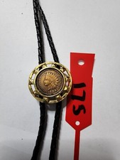Western 1906 Indian Head Penny Arrowhead Bolo Tie Black Cord Gold Toned Tip