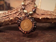 Indian Head Penny Deer Antler Pendent