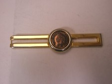 US 1899 Indian Head Penny 1 Cent Coin Tie Clip Clasp Gold